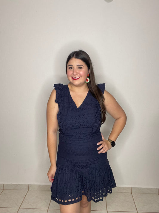 Navy Lace Short Dress