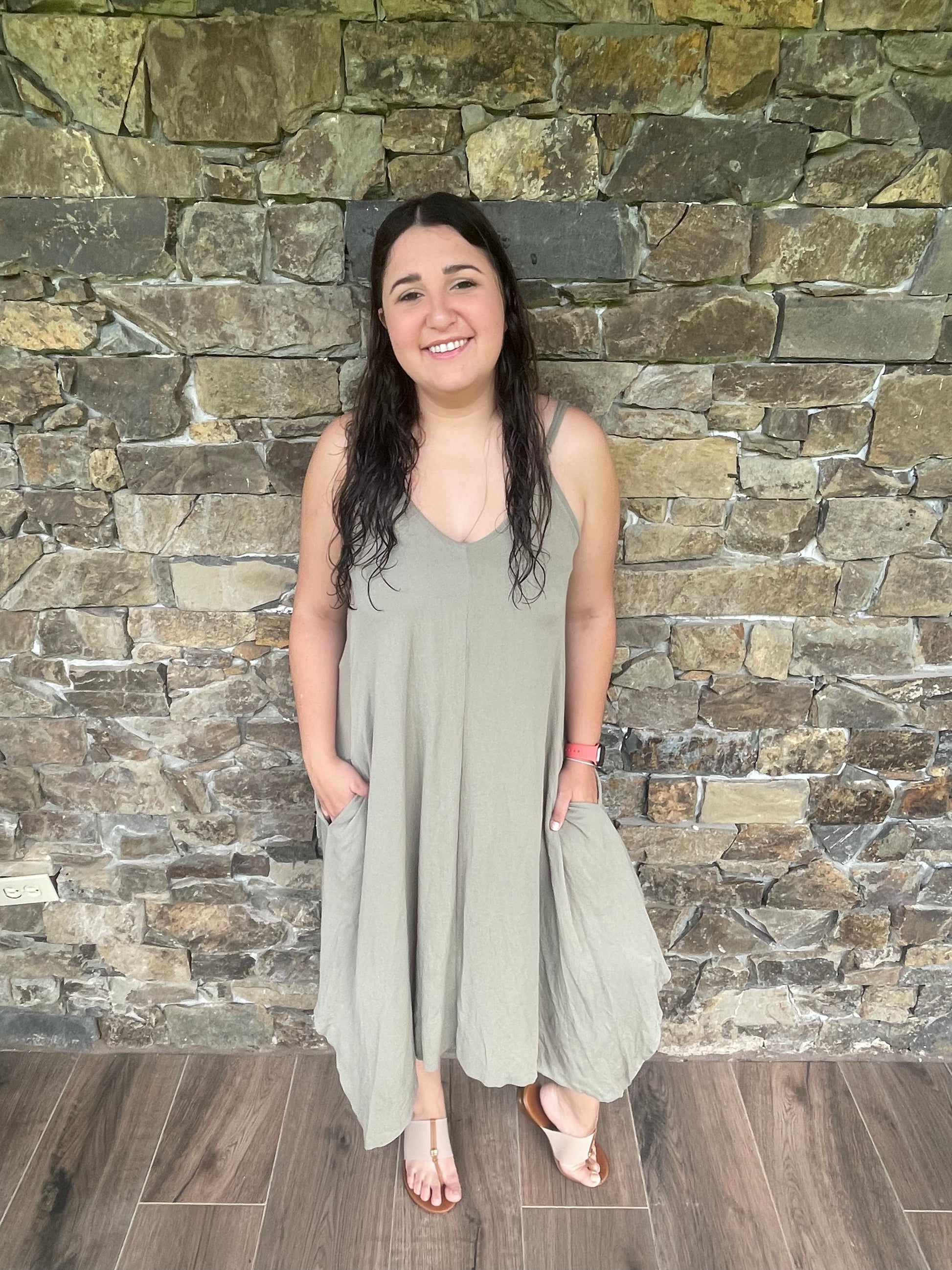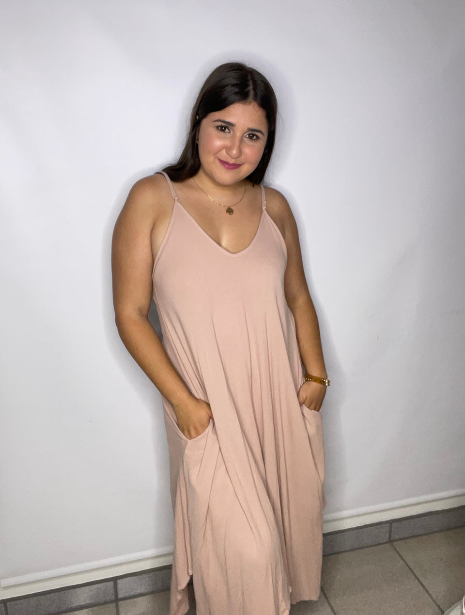 Traje con corte asimétrico, bolsillo y straps ajustables.