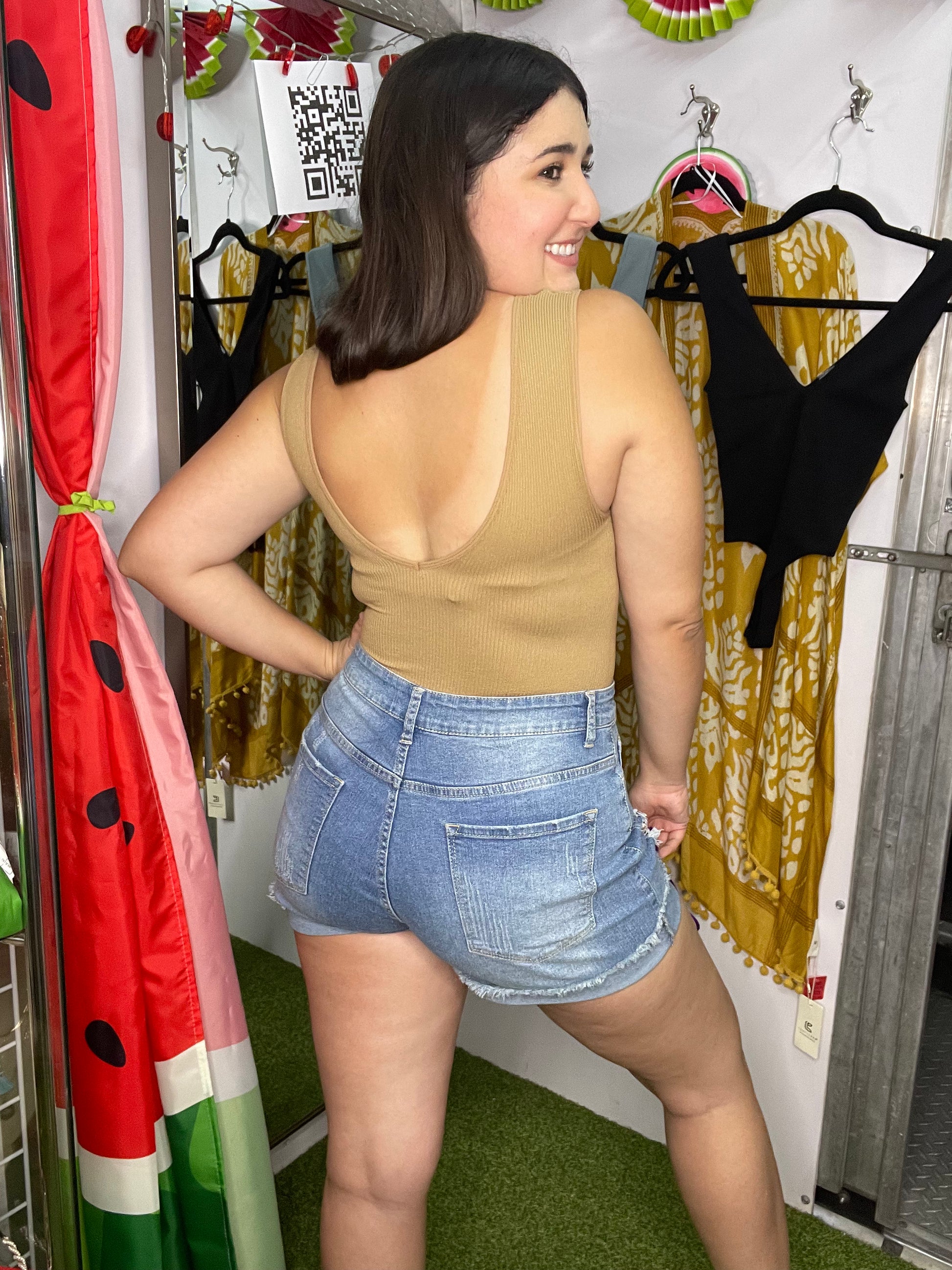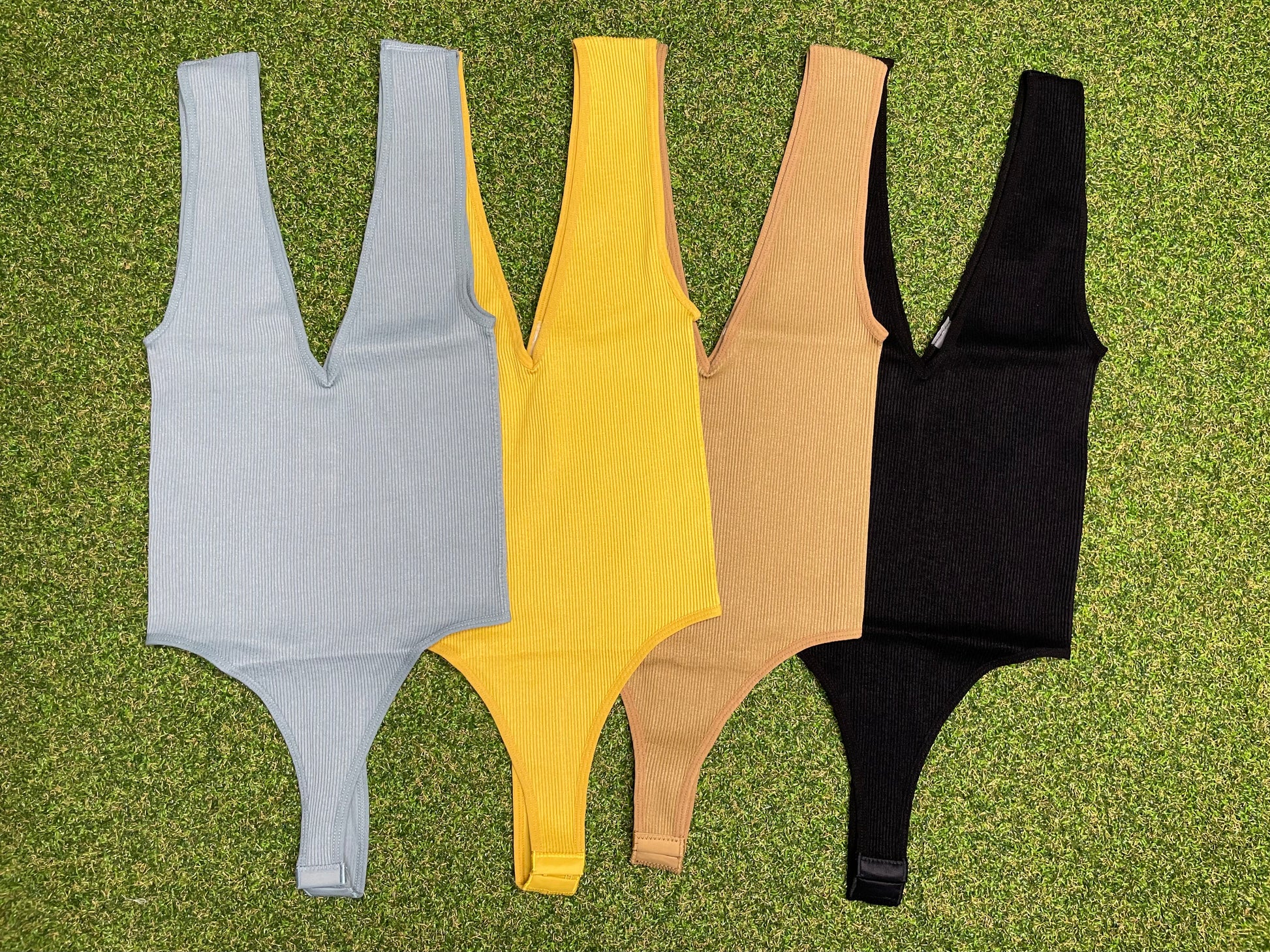 Bodysuits con escote en V en la parte de al frente y en la parte de atras.