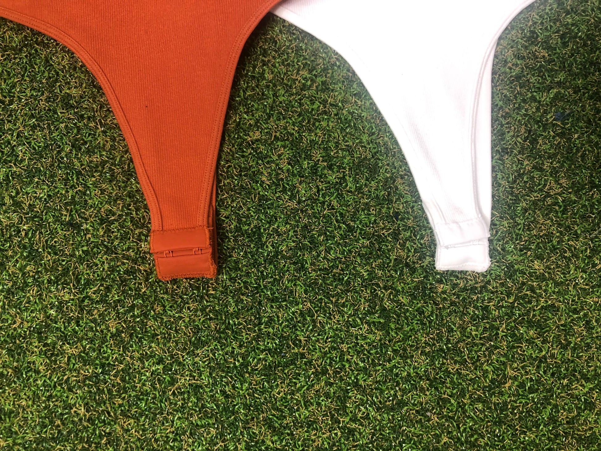 Camisilla bodysuit con manguillos ajustables y cierre en la entrepierna.