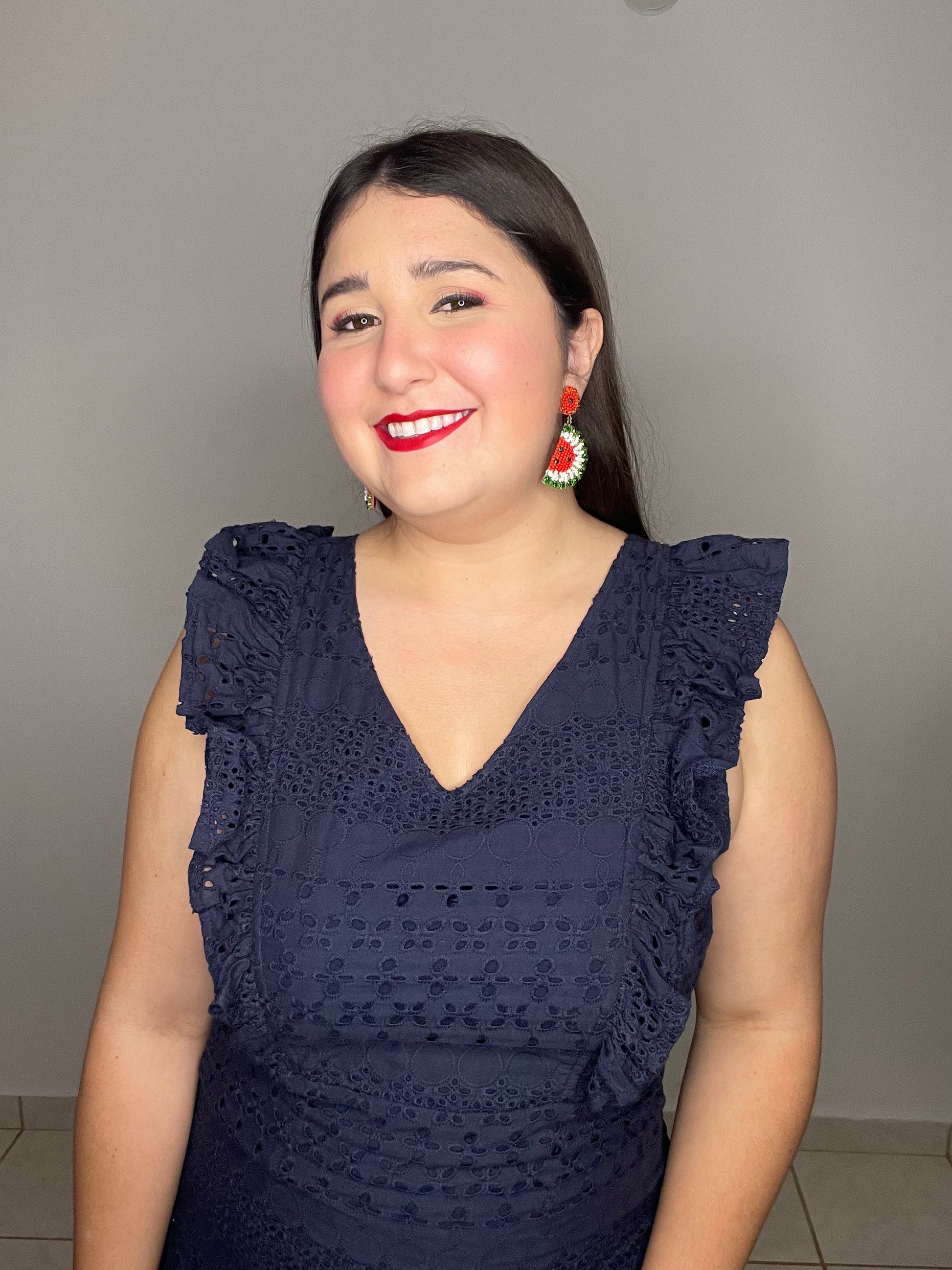 Traje corto de encaje color azul y zipper en toda la espalda.