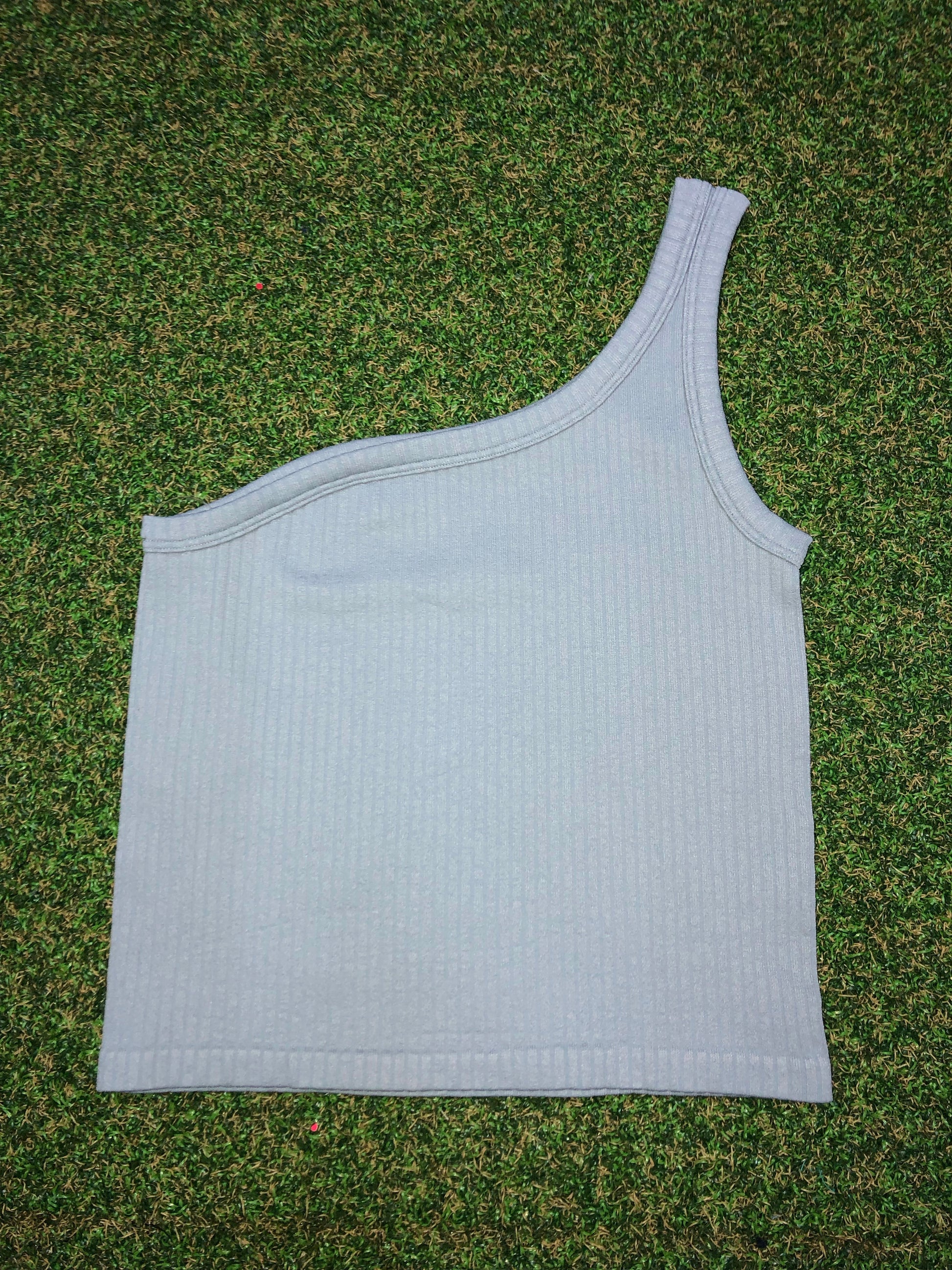 Crop top One shoulder al lado izquierdo con líneas en la tela.